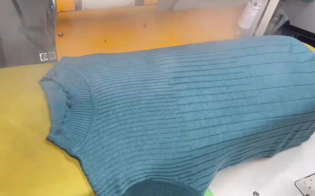 ハンガー跡や伸びてしまったシルエットも、プロの技術で見事にリセット。 専用のプレス機とアイロンを使い、編み目のひとつひとつを整えるように、ふんわり仕上げます。
