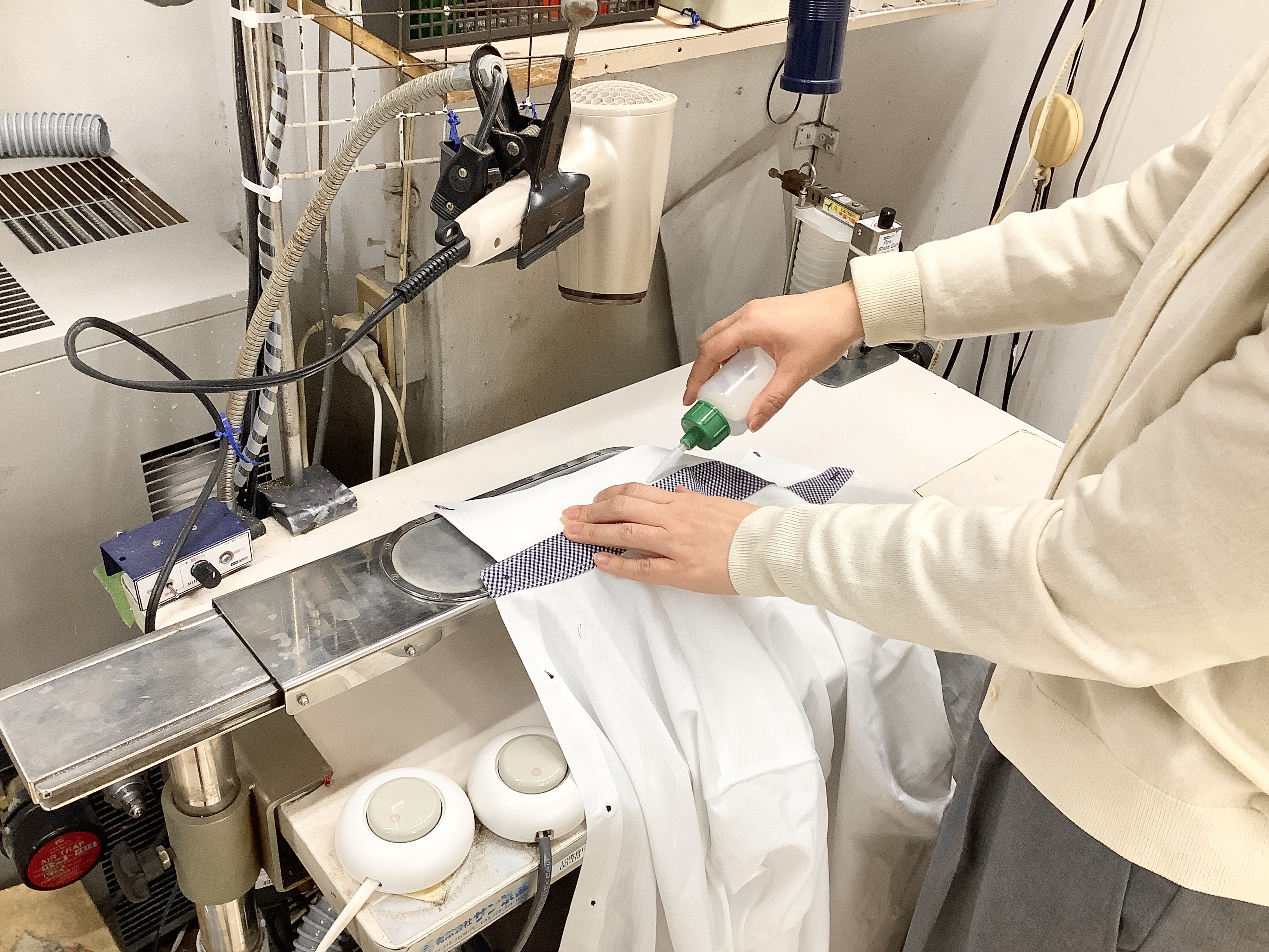 店内で、シミ抜き・洗浄・プレスなどの作業をすべて行っているので、
