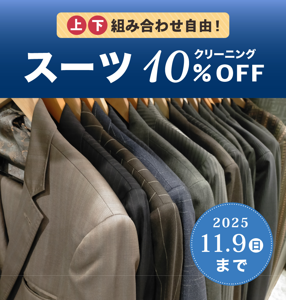 夏スーツのしまい洗いはもちろん、冬物をしまう前に出し忘れていた方も、今がケアのチャンスです。