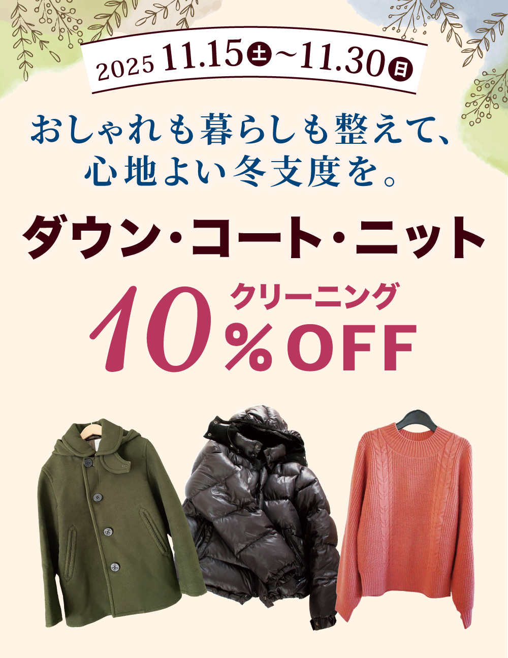 <ダウン、コート、ニット クリーニング​ 10%OFF>
