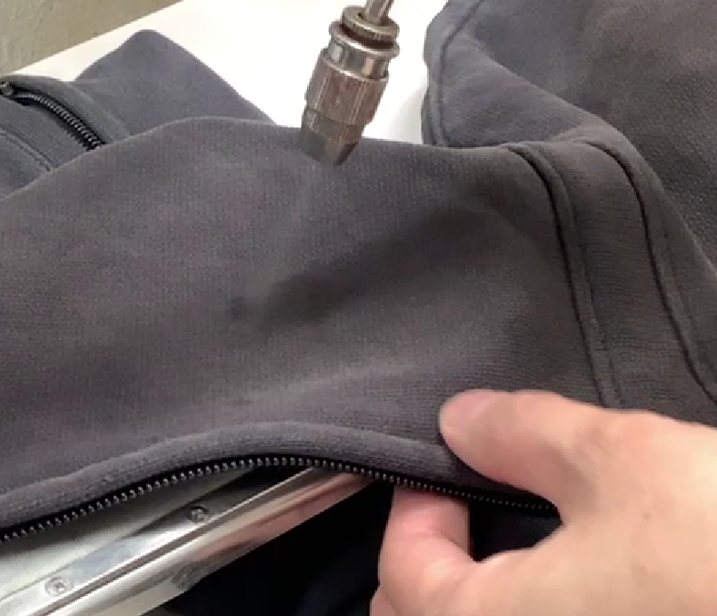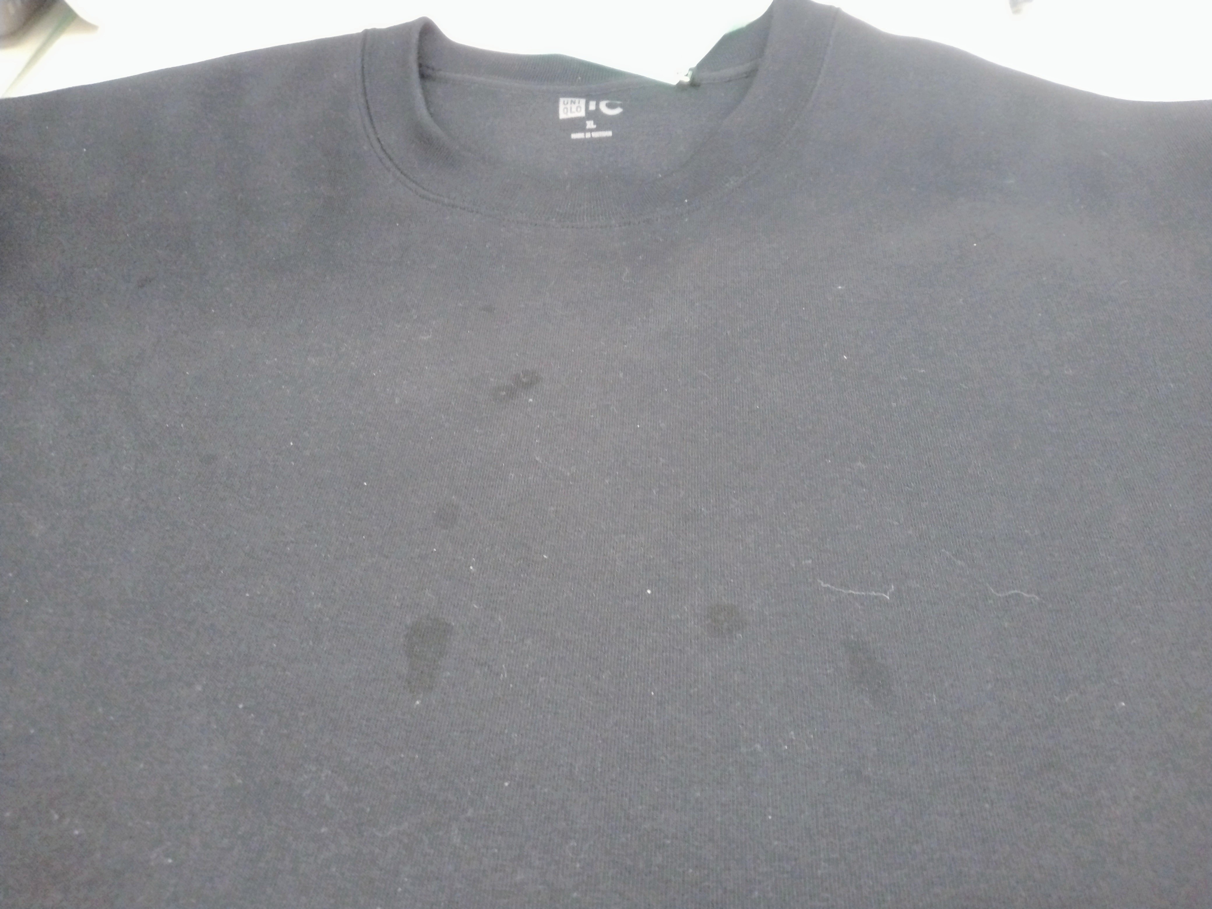 実は今、私たちのお店で一番多いご相談が、このスウェットやパーカーの【油じみ】なんです。